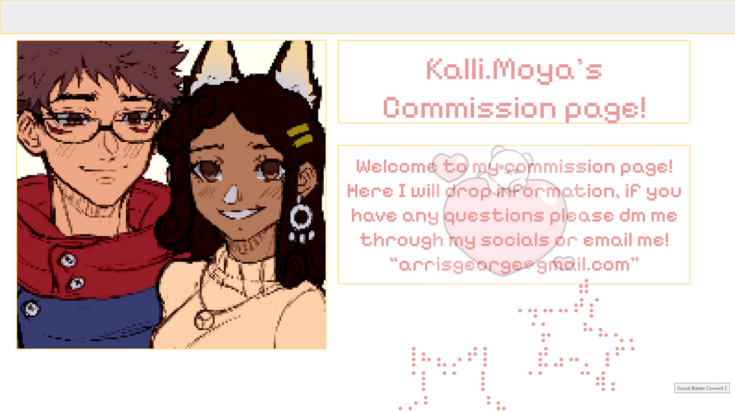 Hai, I'm Kalli! I'm a university student studying video game animation and 3D animation. I'm a digital artist and an aspiring Webtoon creator. Here is easy access to my socials and commission page! Feel free to ask me any questions!